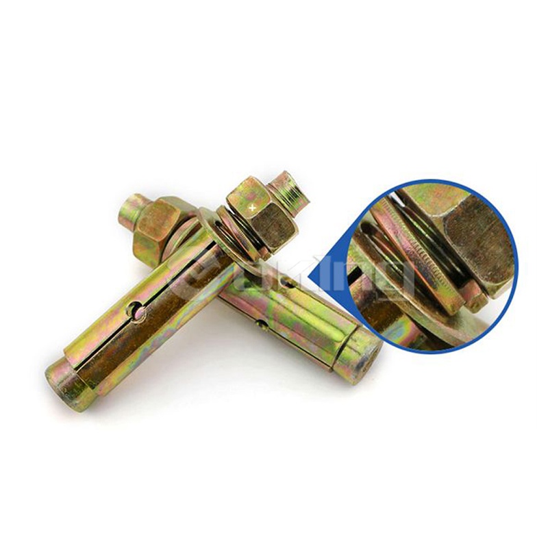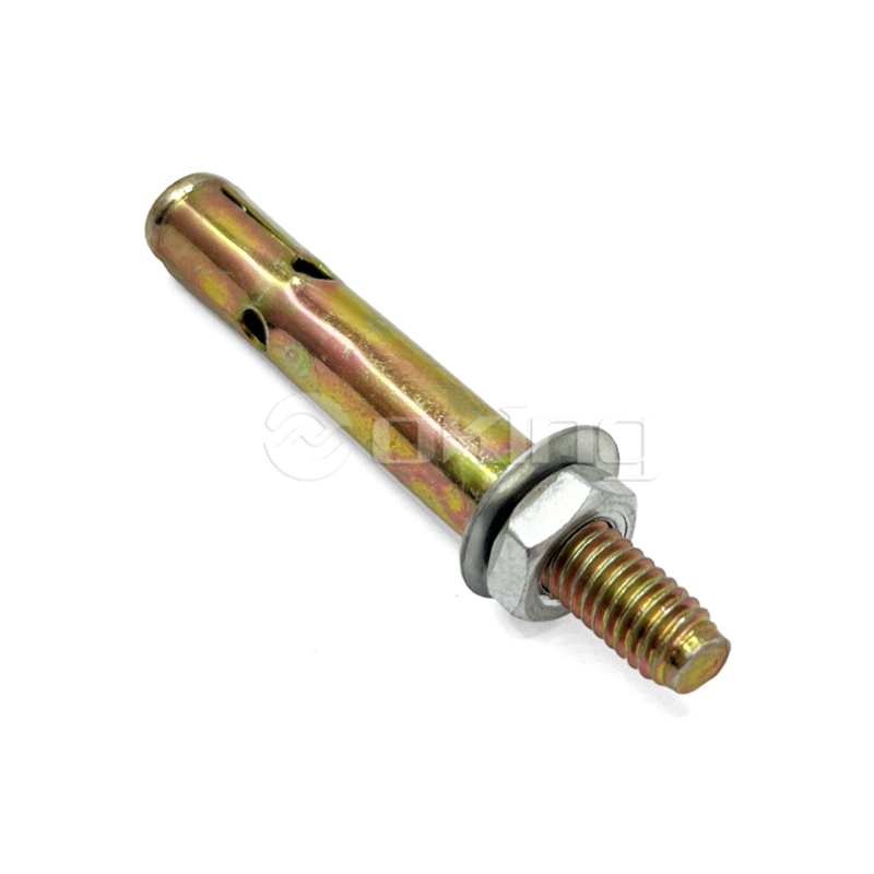●قم جميع الحطام من الفتحة، ثم ضع المرساة الإسفينية من خلال الفتحة الموجودة في التركيب أو مباشرة في البناء الخرساني، ثم قم بمطرقتها في الحفرة المحفورة، مع مراعاة تثبيتها على العمق المطلوب.